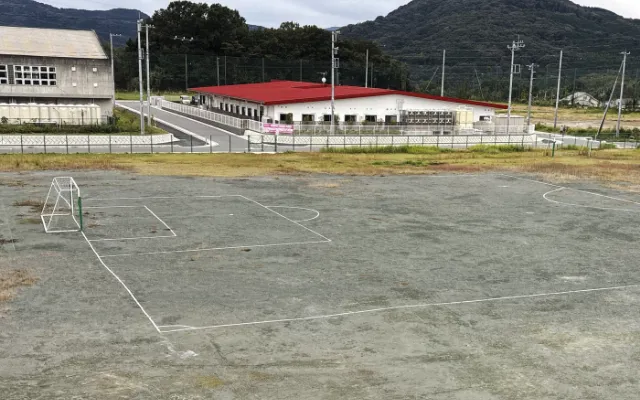 東小川小学校スタジオは、広い砂利のグラウンドが特徴的です。